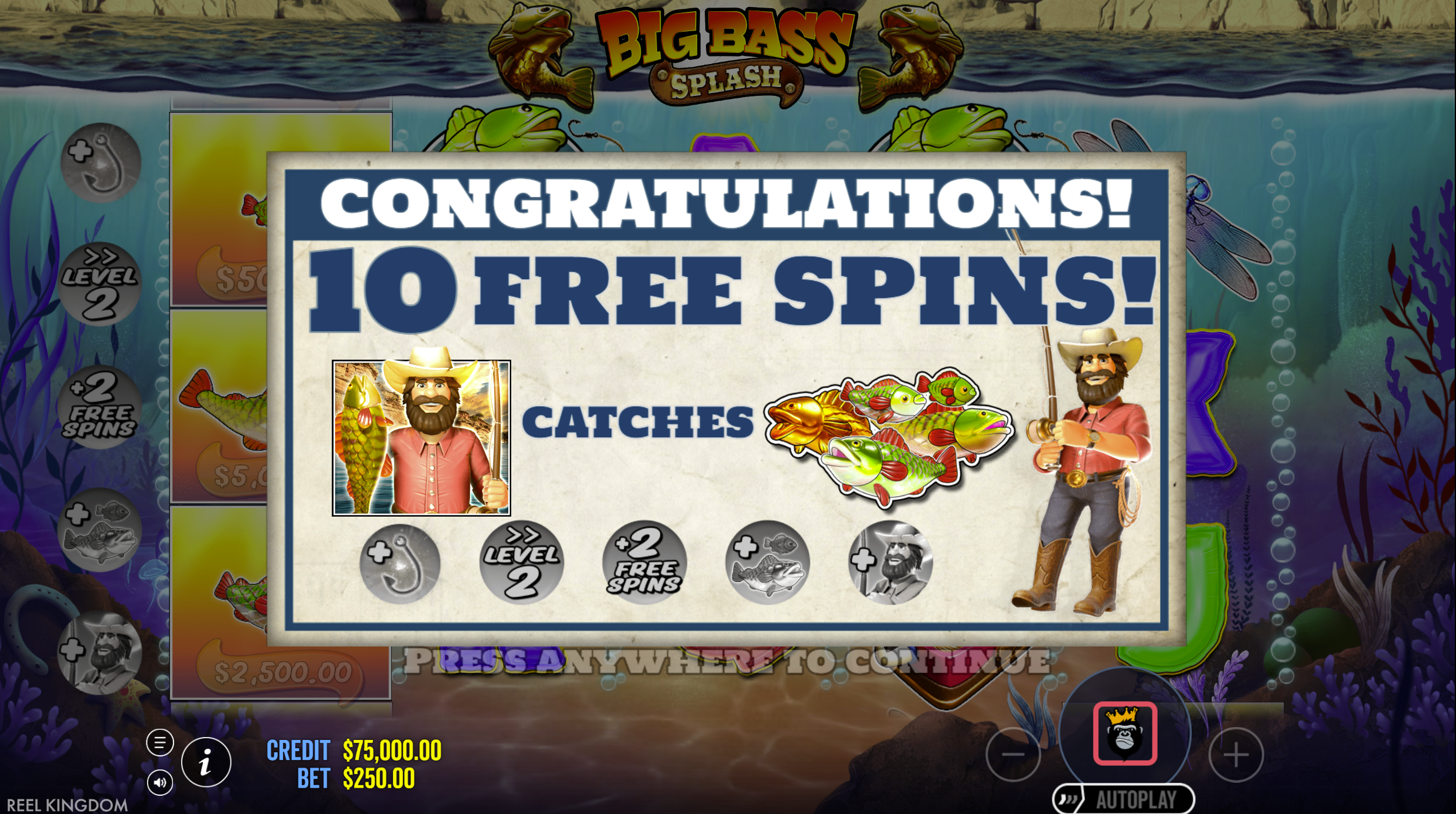 FeaturesScatter-triggered Free Spins, Fisherman Wild, Money-symbol fish, Multipliers, Bonus modifiers